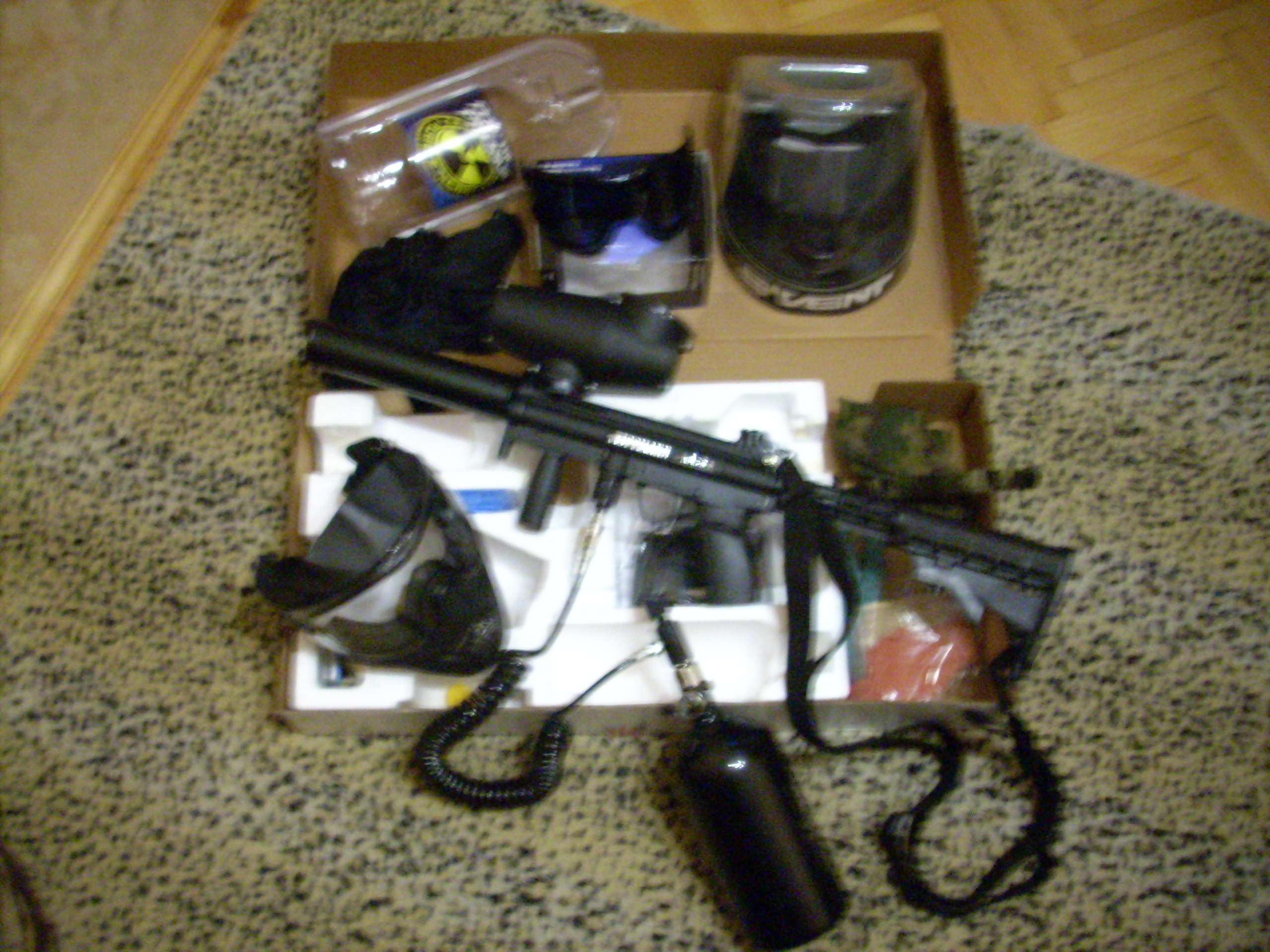 - маркер Tippman A-5 в комплектации Stealth (ствол Flatline, складной приклад Ctock adjustable, выноска баллона Mamba, плечевой ремень);