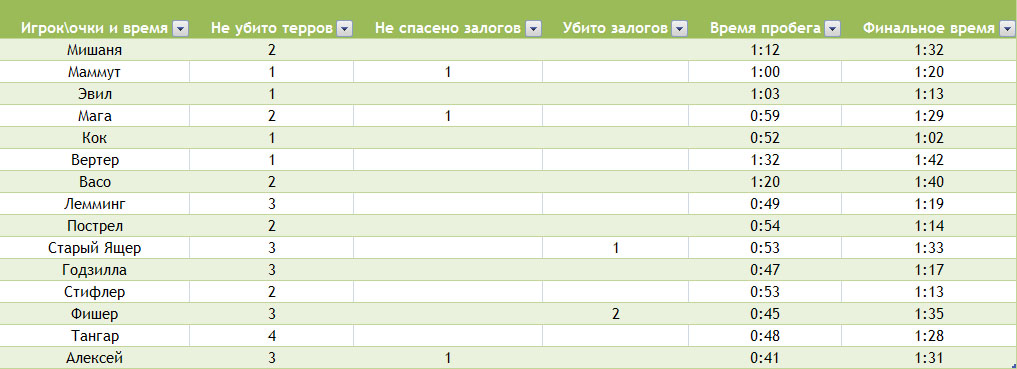 напоминаю, что штрафные 10 секунд начислялись за не убитых терров, убитых залогов и не замеченных залогов