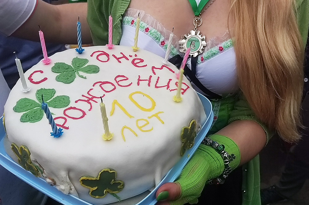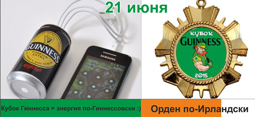 * От Ирландцев: феерверки (21,00 - на Набережной Москвы реки), конкурсы "Книга рекордов Гиннесса", песни под гитару, ирландская музыка, антуражный Гиннесс победителям!